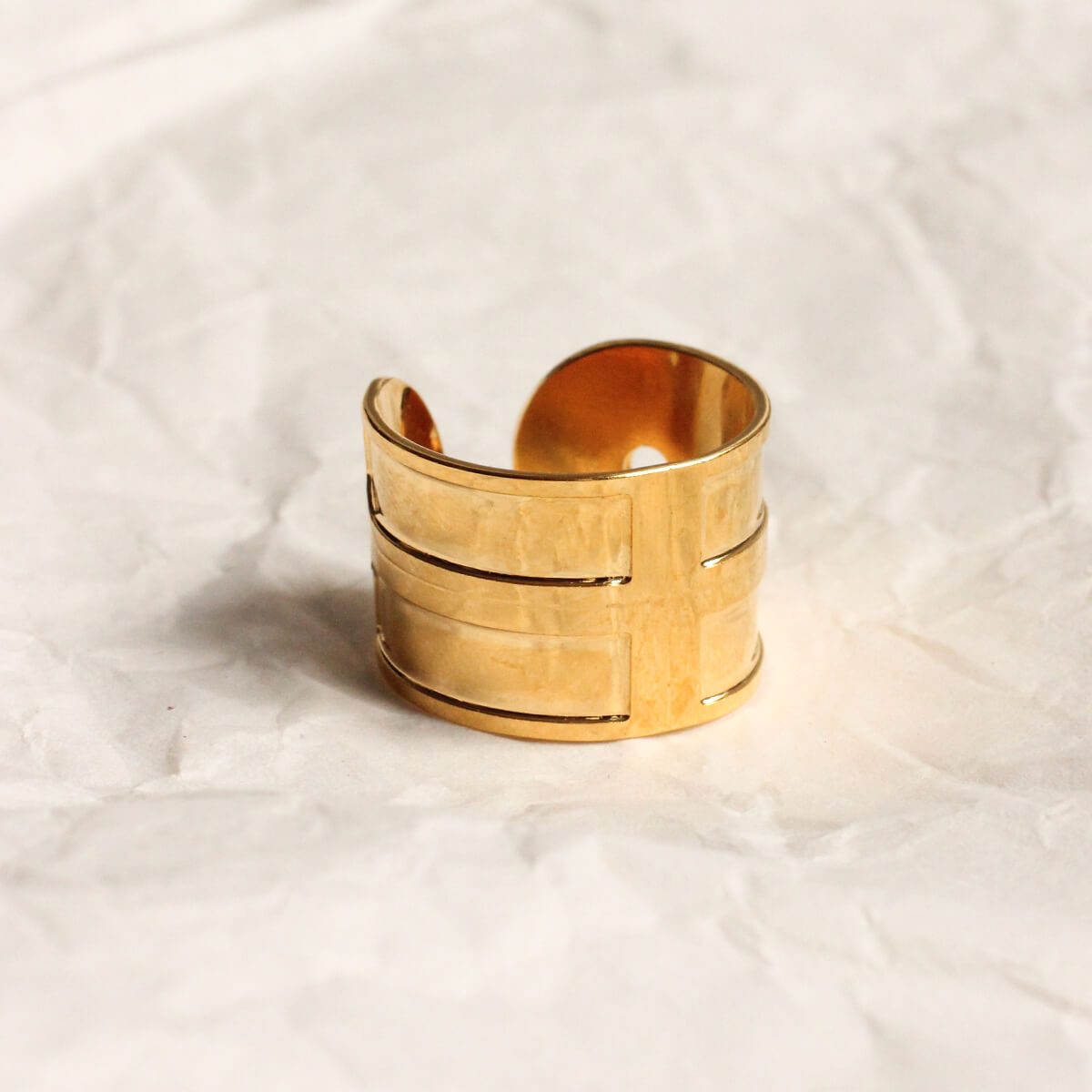 Alma, l'une de nos bagues iconiques, issue de notre première collection. Féminine avec ses formes arrondies et ses gravures très fines. Inspirée de l'architecture des années 1900.