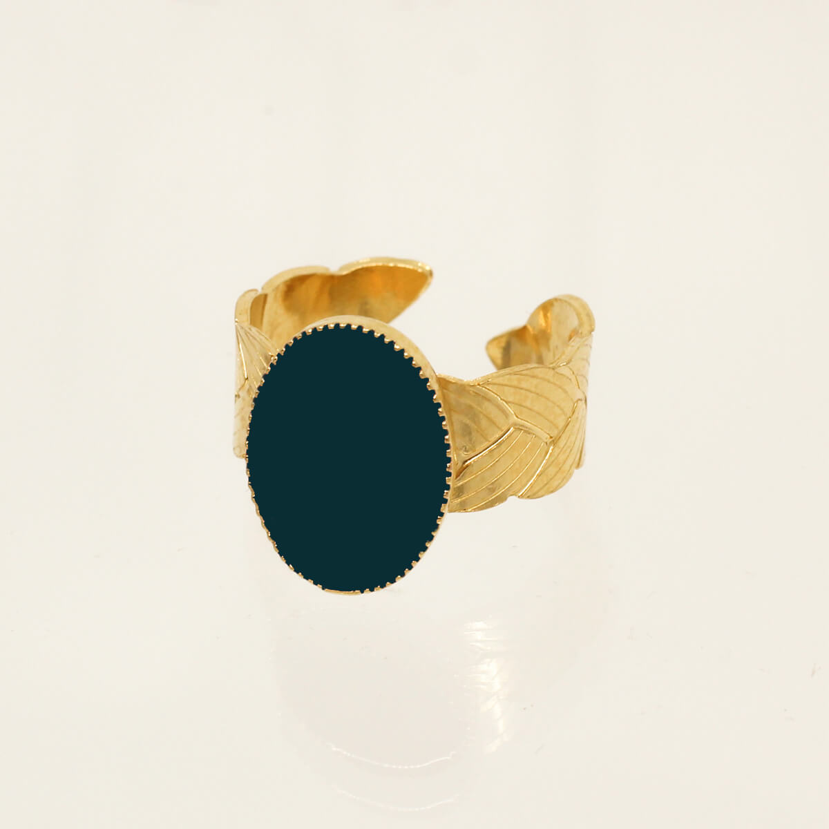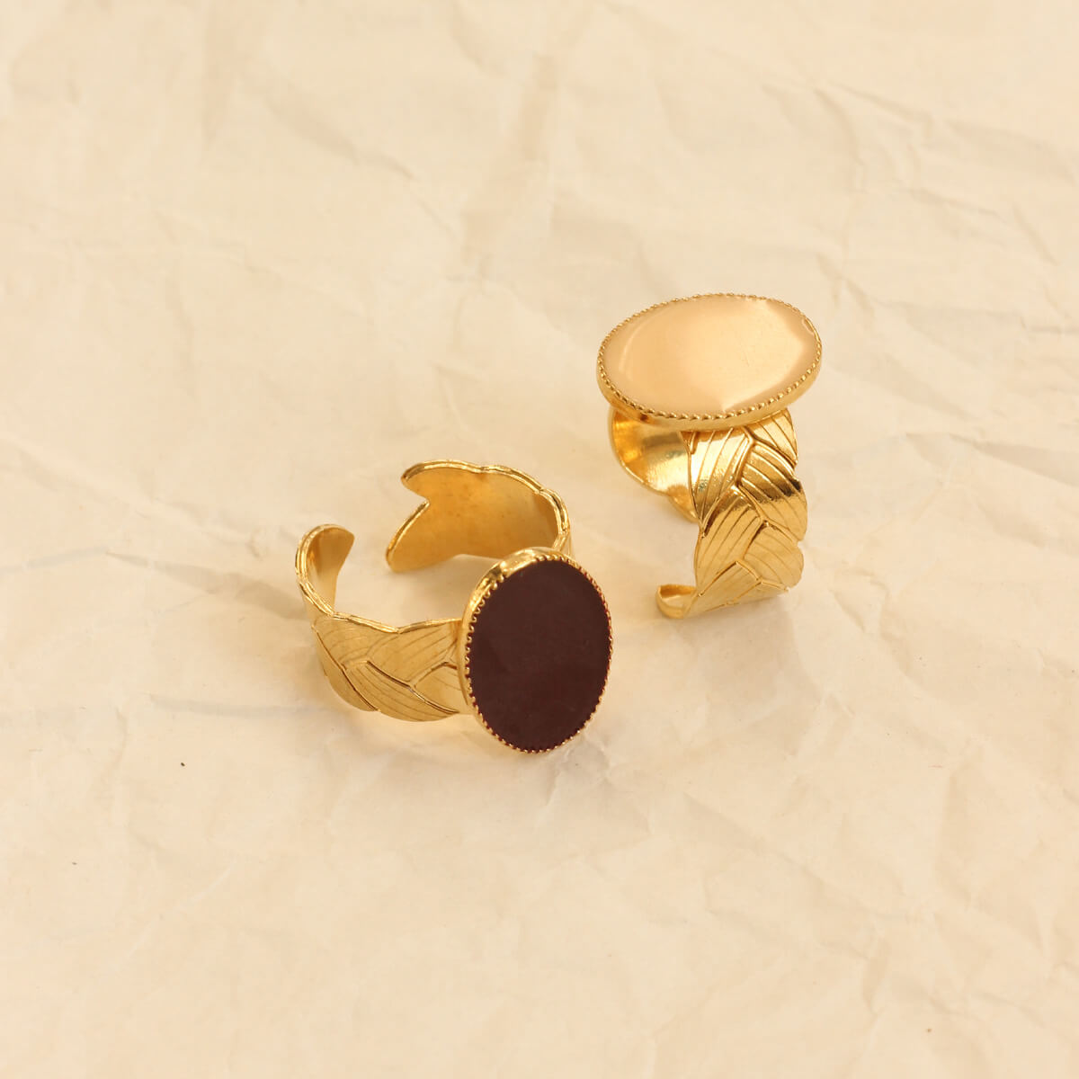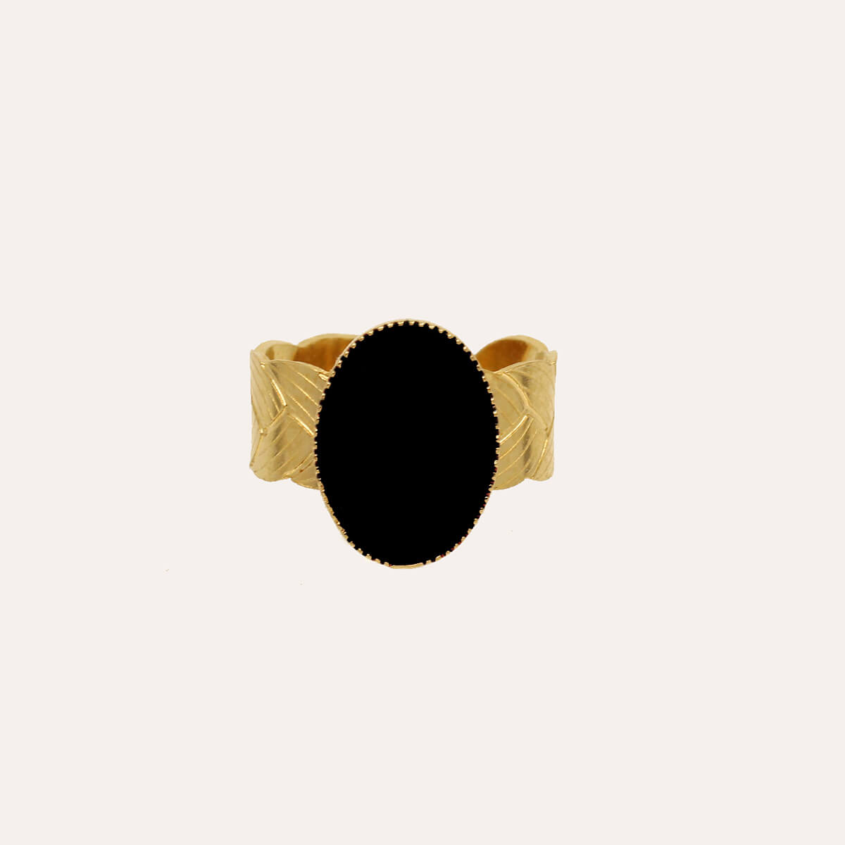Bague ajustable, avec corps de bague texturés et cabochon en résine, en laiton doré à l'or fin 24 carats