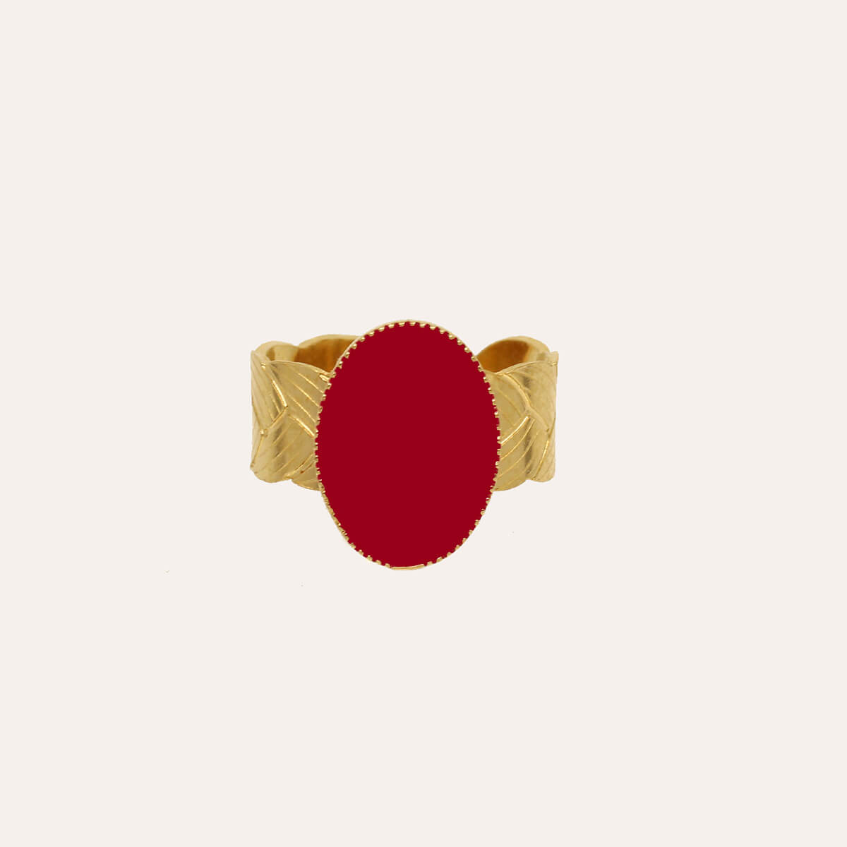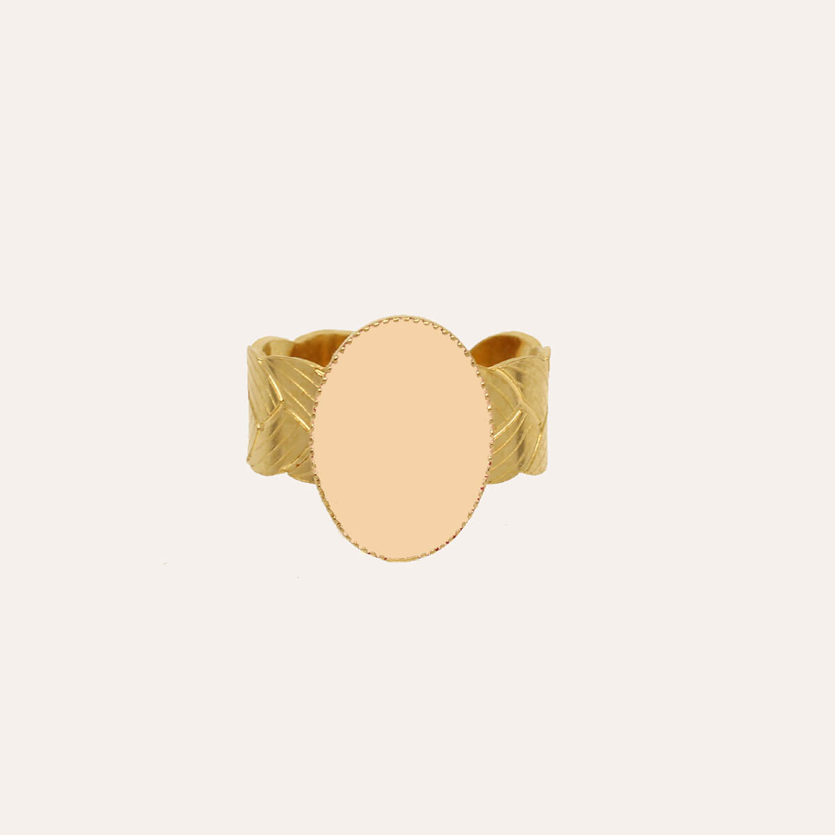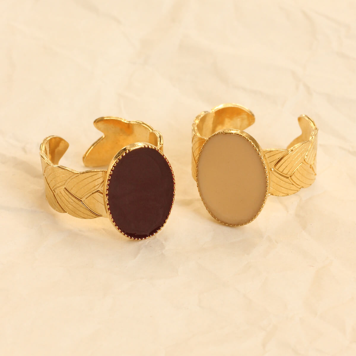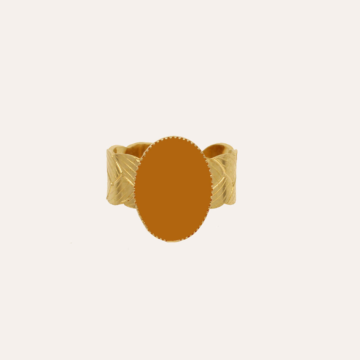Bague ajustable, avec corps de bague texturés et cabochon en résine, en laiton doré à l'or fin 24 carats