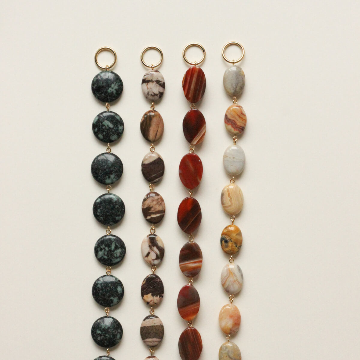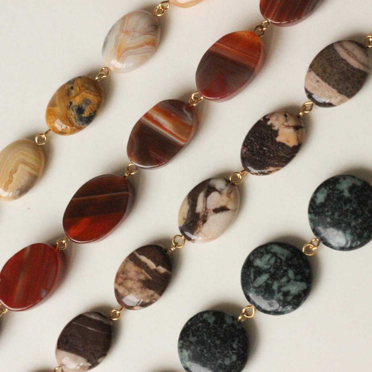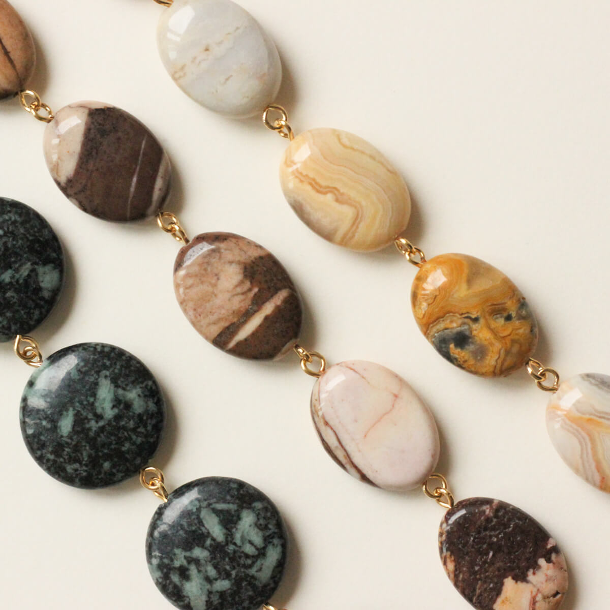 Les rangs de perles sont fabriqués à partir de pierres fines naturelles.