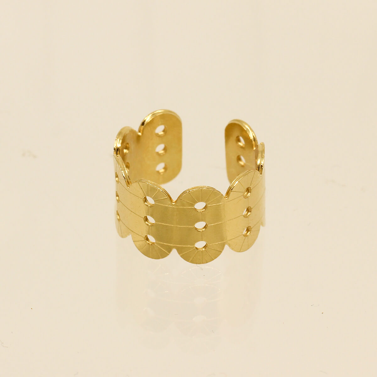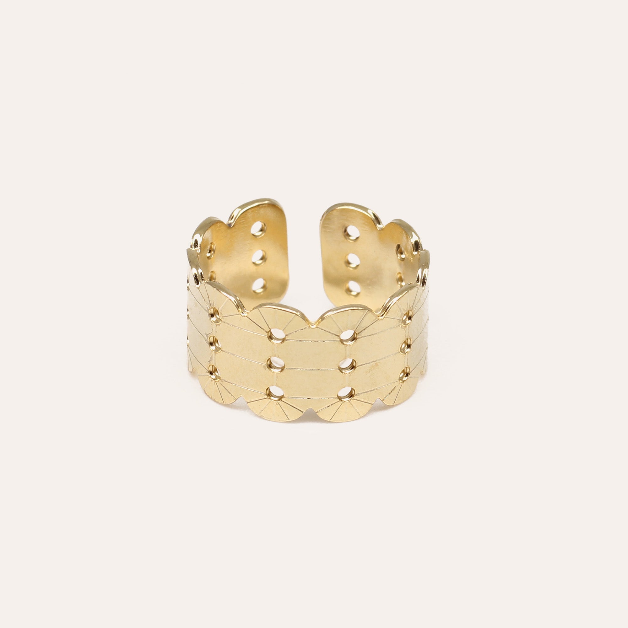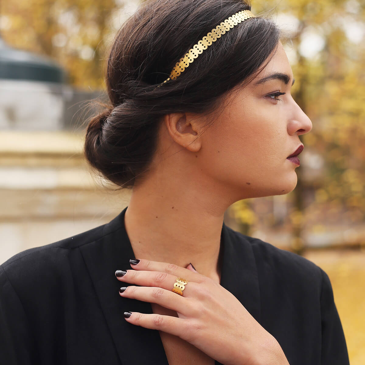 Alma, l'une de nos bagues iconiques, issue de notre première collection. Féminine avec ses formes arrondies et ses gravures très fines. Inspirée de l'architecture des années 1900.