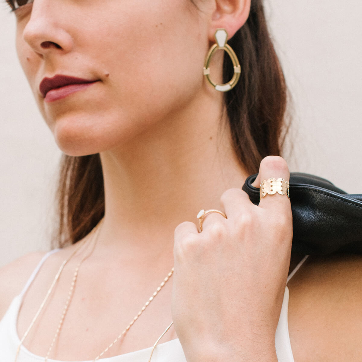 La résine sont les notes de couleurs que vous pouvez voir sur nos bijoux. Il s'agit d'un procédé artisanal. Lorsque vous sélectionnez votre couleur lors de votre commande, la créatrice vient ensuite déposer à la main la résine dans la couleur de votre choix sur chaque pièce.