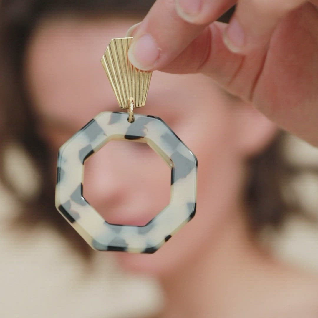 Les boucles d'oreilles AVA mêlent graphisme et légèreté. Elles twisteront votre look en un clin d'oeil. Elles sont fabriquées à partir d'acétate de cellulose, de haute qualité en provenance d'Italie, découpé ensuite par nos soins.