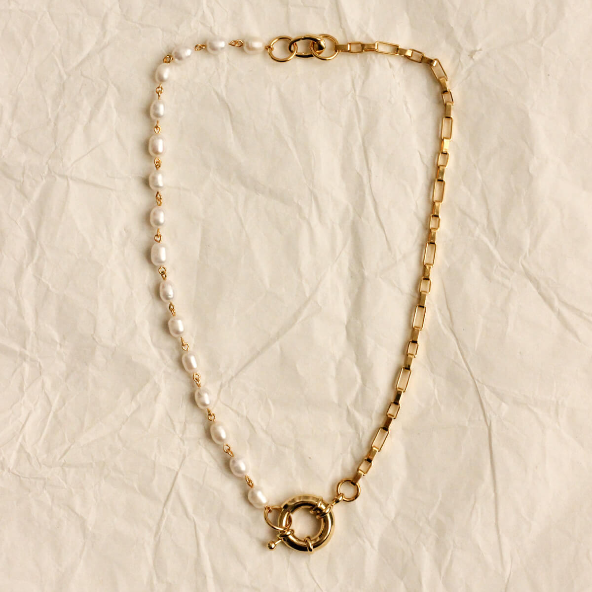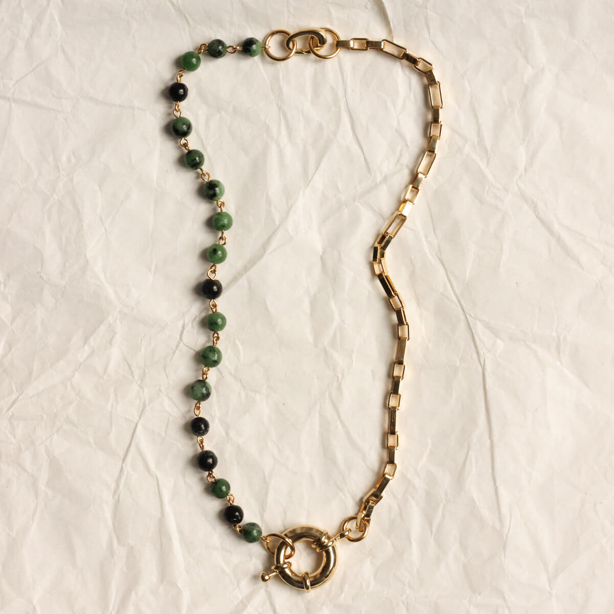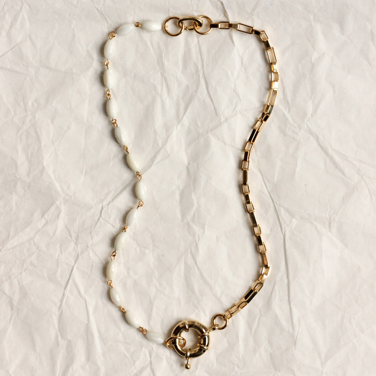 Une maille géométrique à mélanger avec nos perles fines naturelles pour un collier unique.