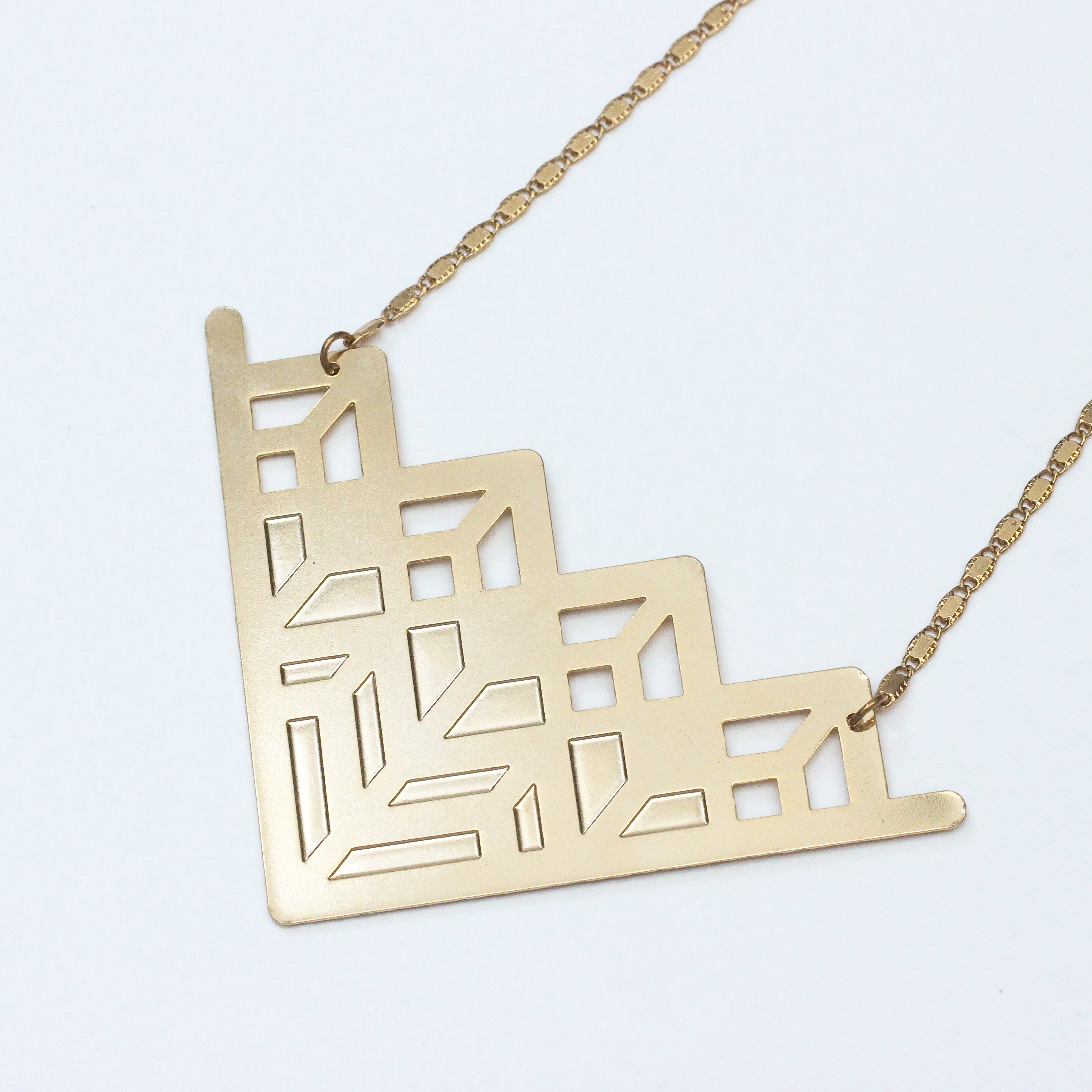 Envie d'un collier qui vous habille en un claquement de doigt? Le collier maxi Edmée avec son look Art Déco sera parfait!