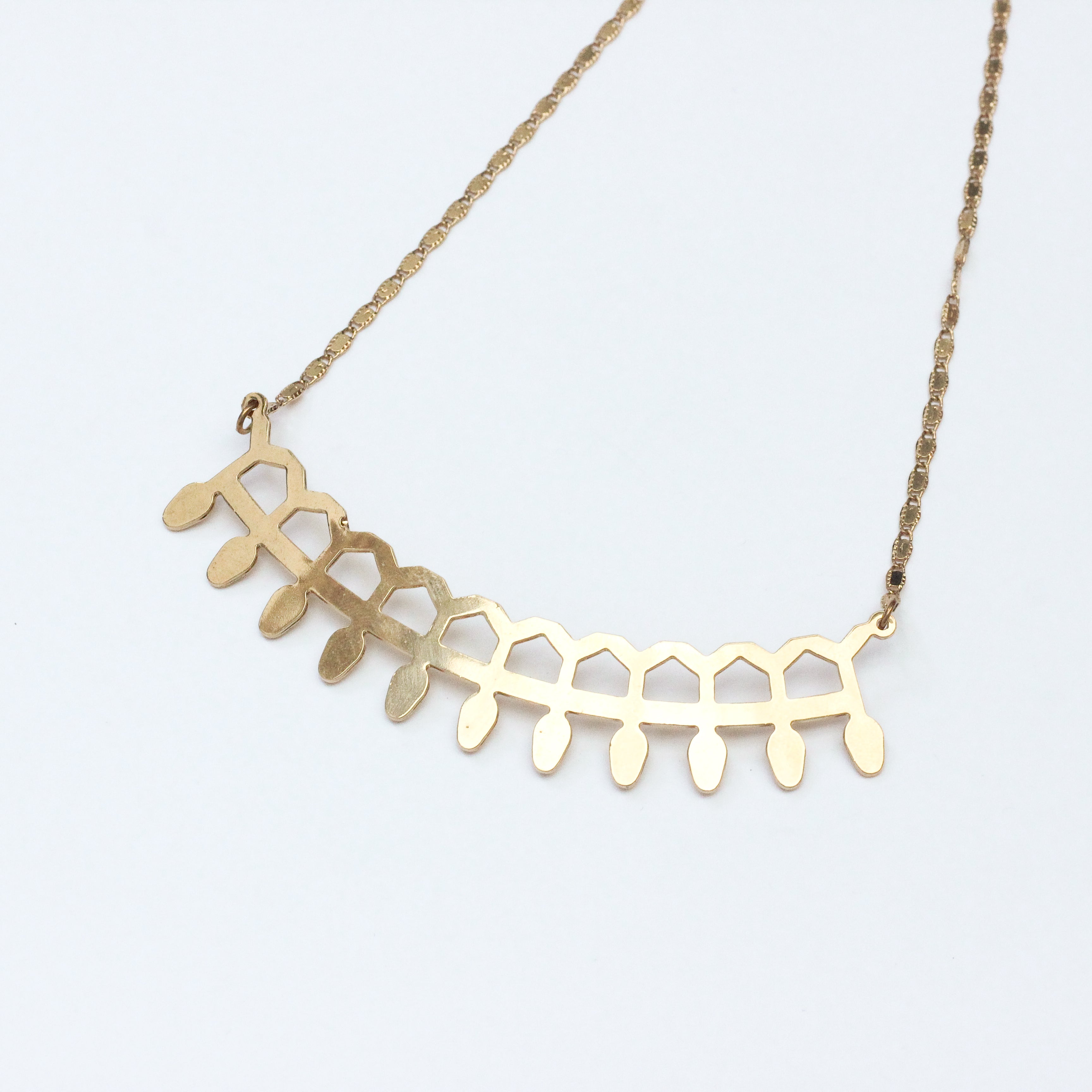 Une ligne graphique inspirée des plantes tropicales. On aime le côté végétal du collier Maxi HAVANA. Parfait pour relever un haut un peu trop sage.