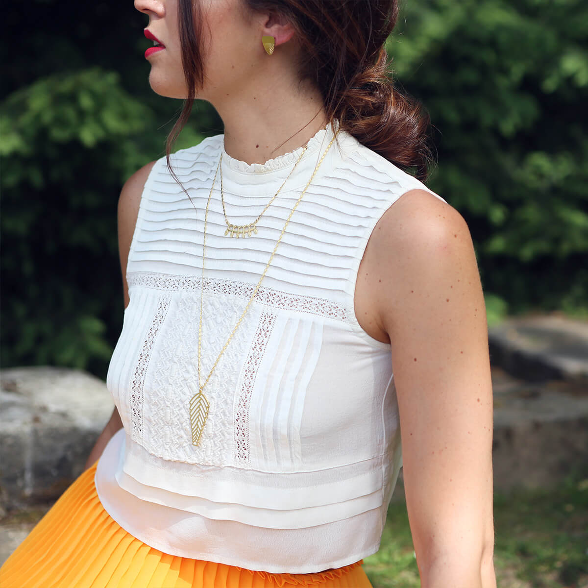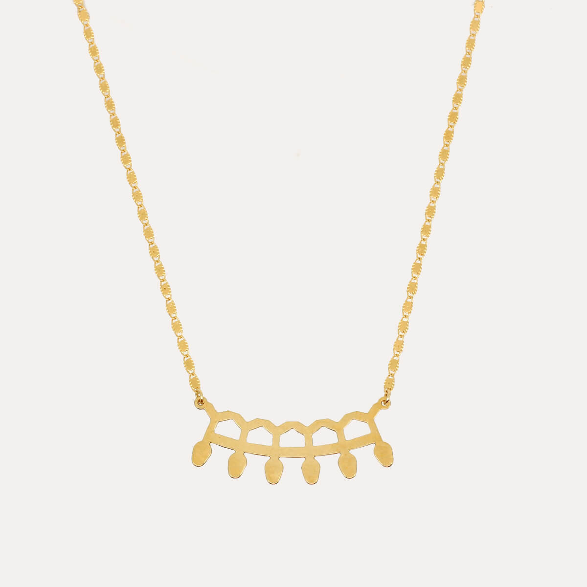 Un pendentif aux inspirations végétales et architecturales. Un design graphique qui se portera avec toutes vos tenues