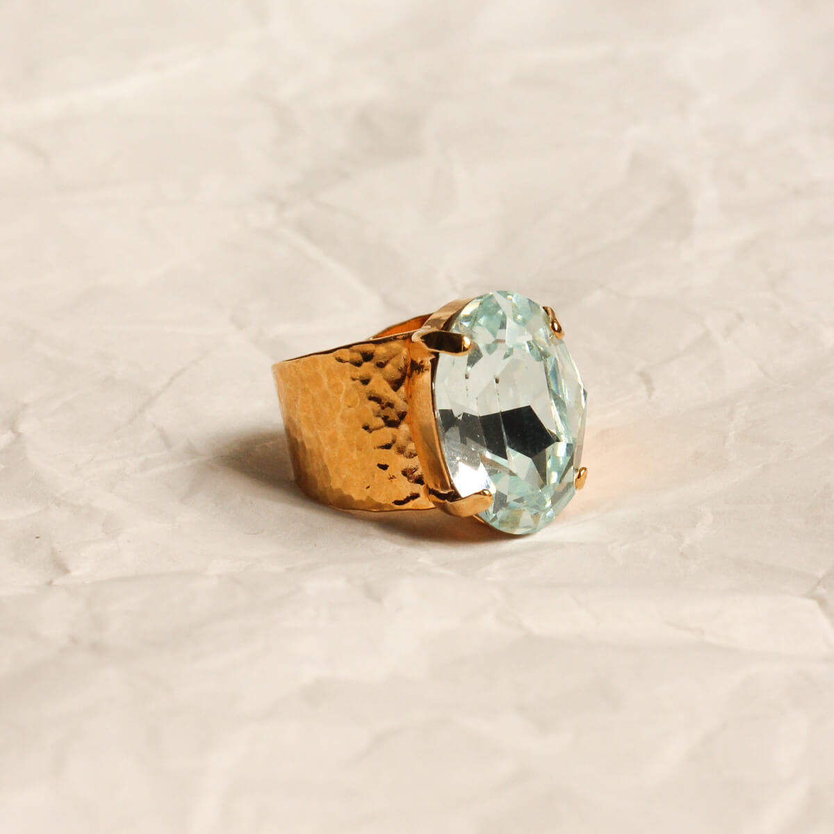Costa, c'est la bague cocktail par excellence. Une belle pierre qui brille de mille feux et un corps de bague martelé à la main. Une pièce pleine de caractère qui attirera tous les regards.