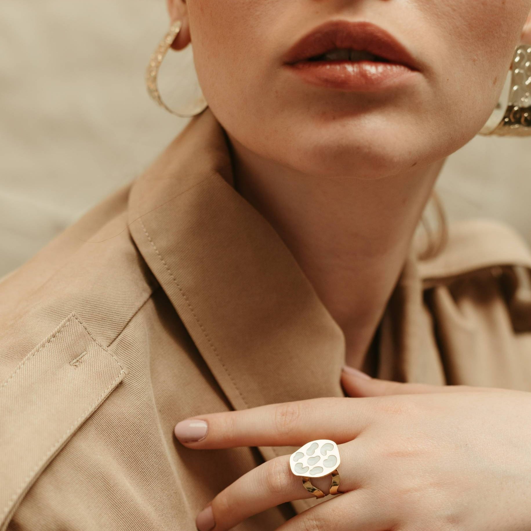 Une bague aux allures animales. On aime son motif inspiré panthère et son corps de bague aux ondulations suaves. Pour un look sauvage jusqu'au bout des doigts!