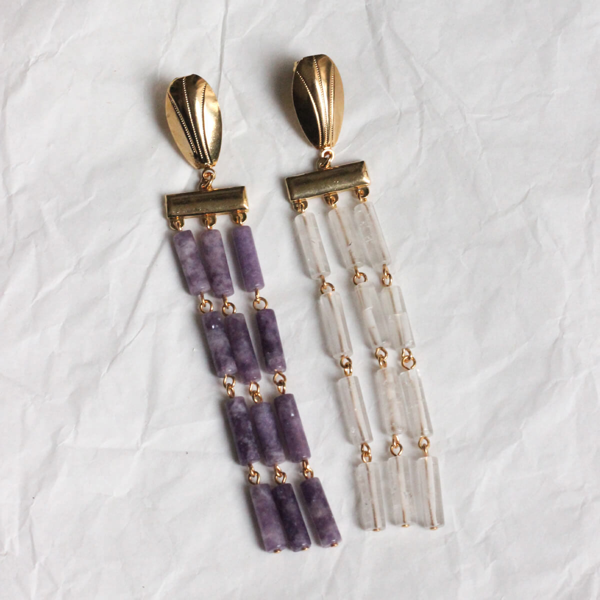 Pour certains de nos bijoux, nous utilisons des perles fines naturelles comme du quartz ou de l'améthyste. Ainsi que de véritables perles de culture d'eau douce pour des bijoux de qualité.