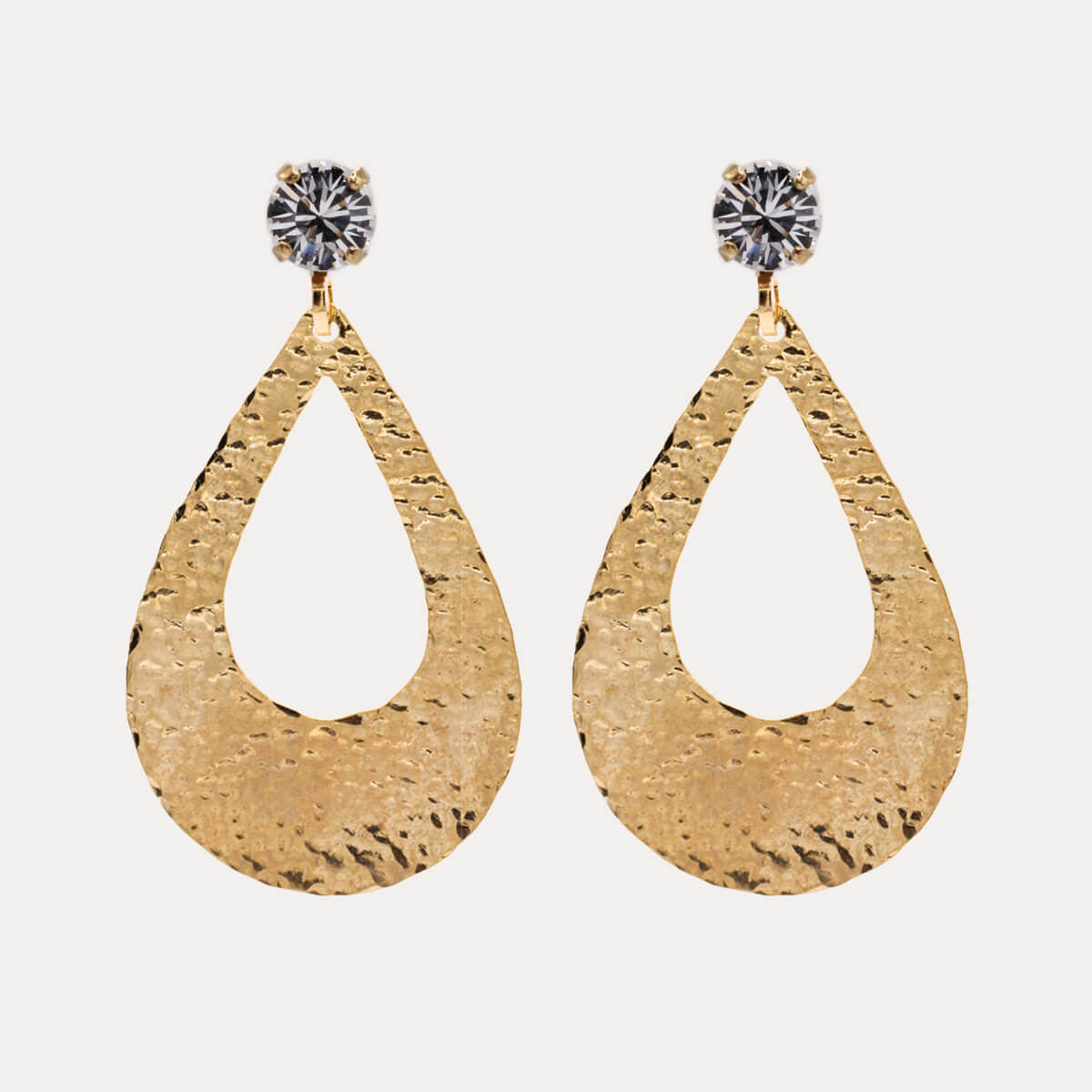 De belles boucles faites pour être remarquées. Avec leur texture entièrement martelée à la main pour que chaque boucle soit unique. Réhaussé de son cristal pour une touche colorée.