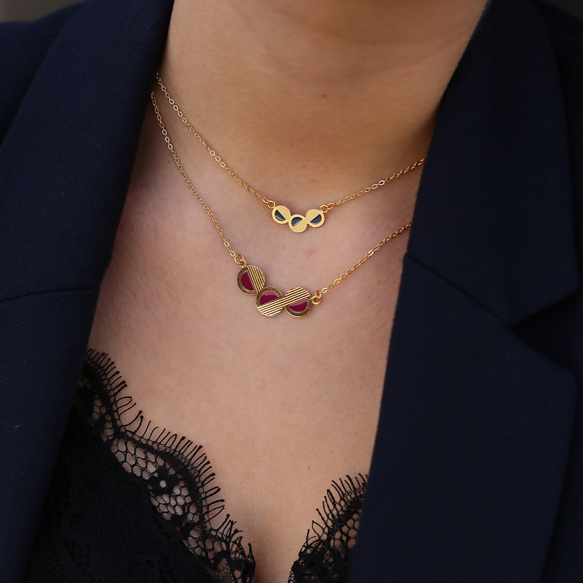 La résine sont les notes de couleurs que vous pouvez voir sur nos bijoux. Il s'agit d'un procédé artisanal. Lorsque vous sélectionnez votre couleur lors de votre commande, la créatrice vient ensuite déposer à la main la résine dans la couleur de votre choix sur chaque pièce.