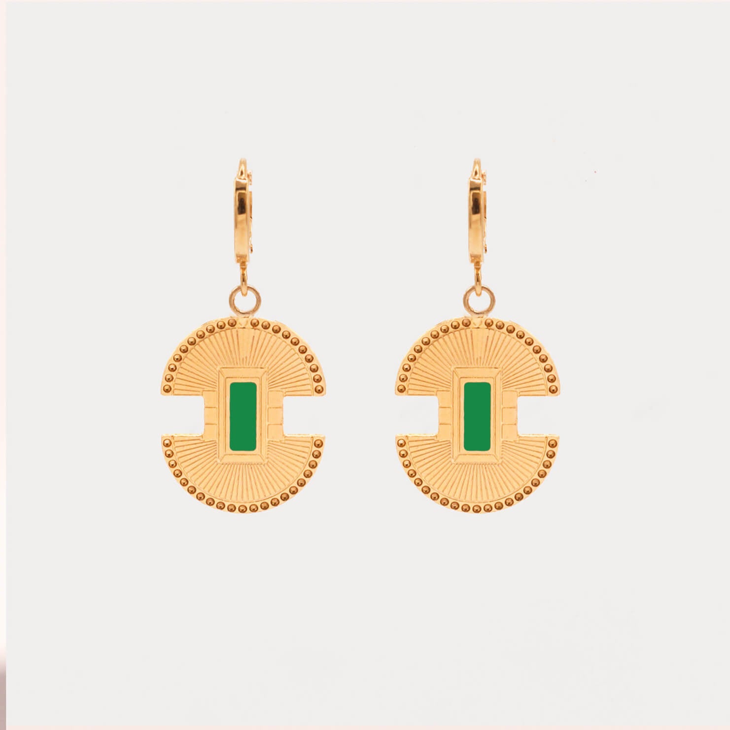 La résine sont les notes de couleurs que vous pouvez voir sur nos bijoux. Il s'agit d'un procédé artisanal. Lorsque vous sélectionnez votre couleur lors de votre commande, la créatrice vient ensuite déposer à la main la résine dans la couleur de votre choix sur chaque pièce.