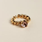 Notre bague qui brille de milles feux. Une allure vintage avec sa torsade dorée, réhaussé d'un cristal.