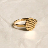 Une fine bague ornée d'une pampille estampée avec de la véritable dentelle de Calais.