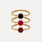 La résine sont les notes de couleurs que vous pouvez voir sur nos bijoux. Il s'agit d'un procédé artisanal. Lorsque vous sélectionnez votre couleur lors de votre commande, la créatrice vient ensuite déposer à la main la résine dans la couleur de votre choix sur chaque pièce.