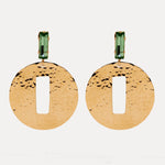 De belles boucles faites pour être remarquées. Avec leur découpe et leur texture entièrement réalisée à la main pour que chaque boucle soit unique. Réhaussé de son cristal baguette pour une touche colorée.