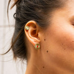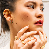 La résine sont les notes de couleurs que vous pouvez voir sur nos bijoux. Il s'agit d'un procédé artisanal. Lorsque vous sélectionnez votre couleur lors de votre commande, la créatrice vient ensuite déposer à la main la résine dans la couleur de votre choix sur chaque pièce.