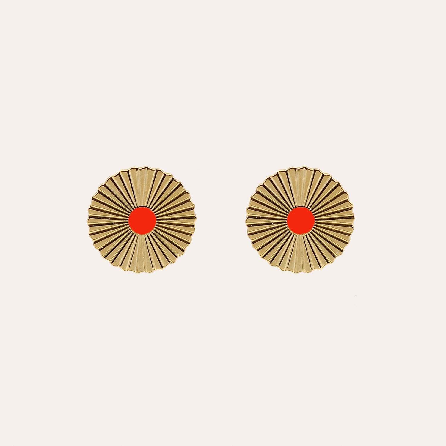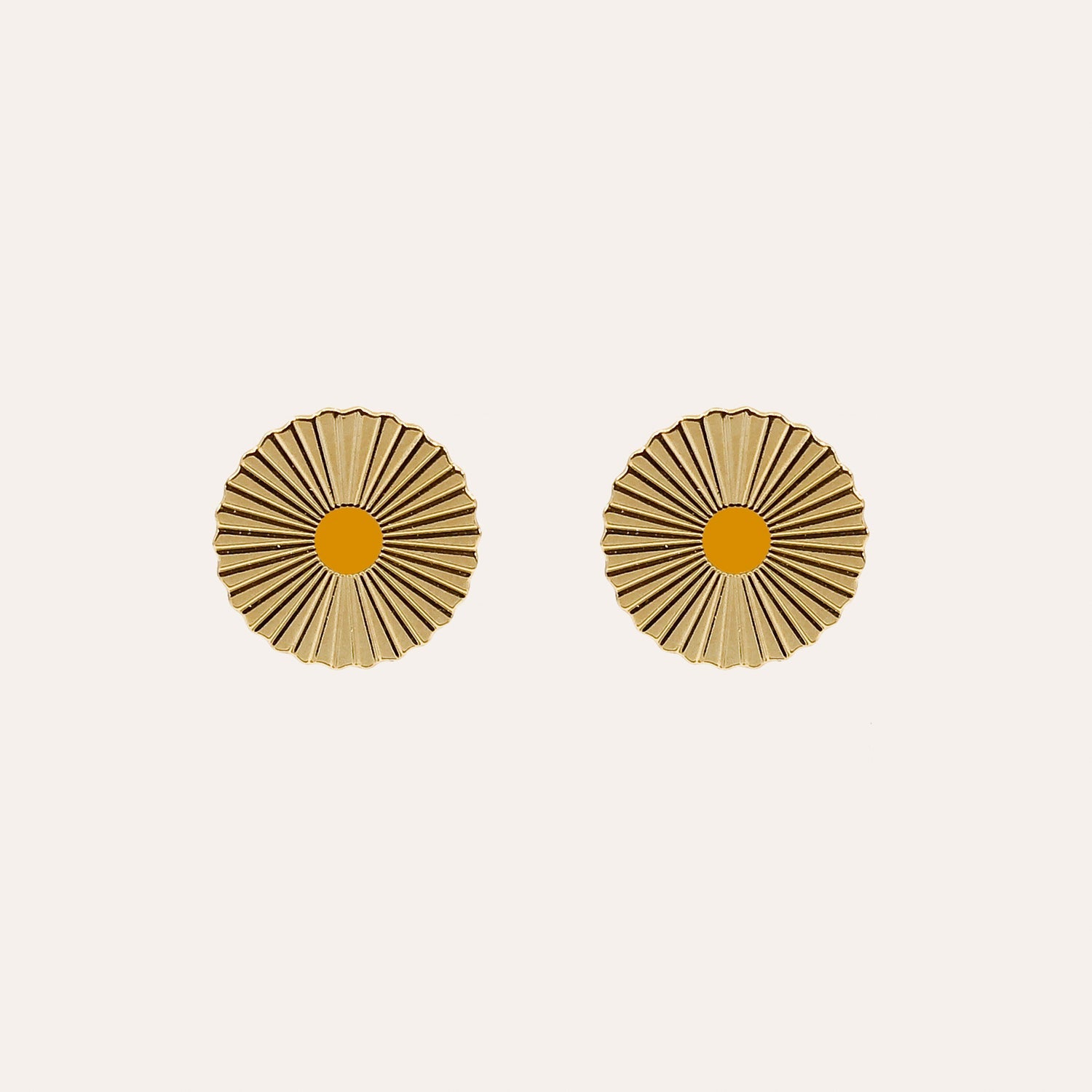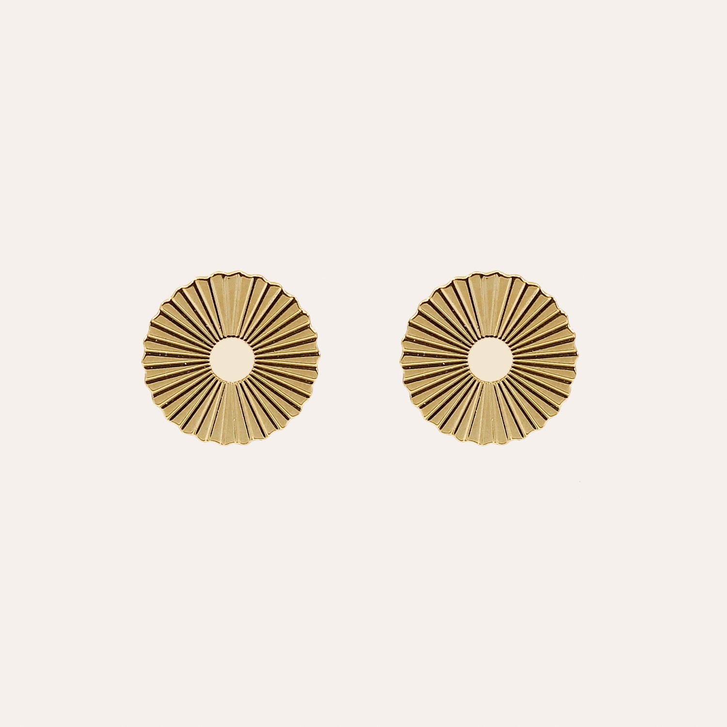 Avec leur jeu de gravure solaire, les puces Daisy accrochent la lumière comme de petites boules à facettes à vos oreilles. A porter sans modération! A combiner avec les mini puces Daisy pour jouer avec les différentes tailles.
