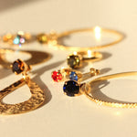 De belles boucles à l'esprit créoles. Un anneau aux gravures vintage et un cristal coloré pour la touche de pep's!