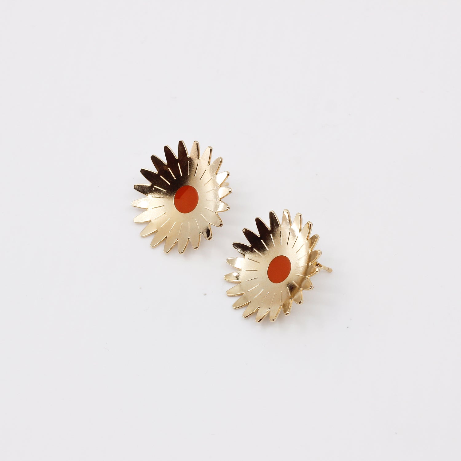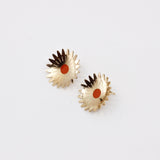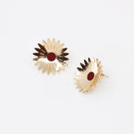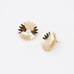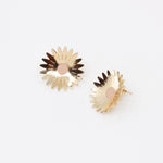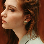 Des boucles d'oreilles aux courbes florales. On aime le volume des puces Marygold avec leur forme légèrement bombée qui contraste avec leur côté graphique.