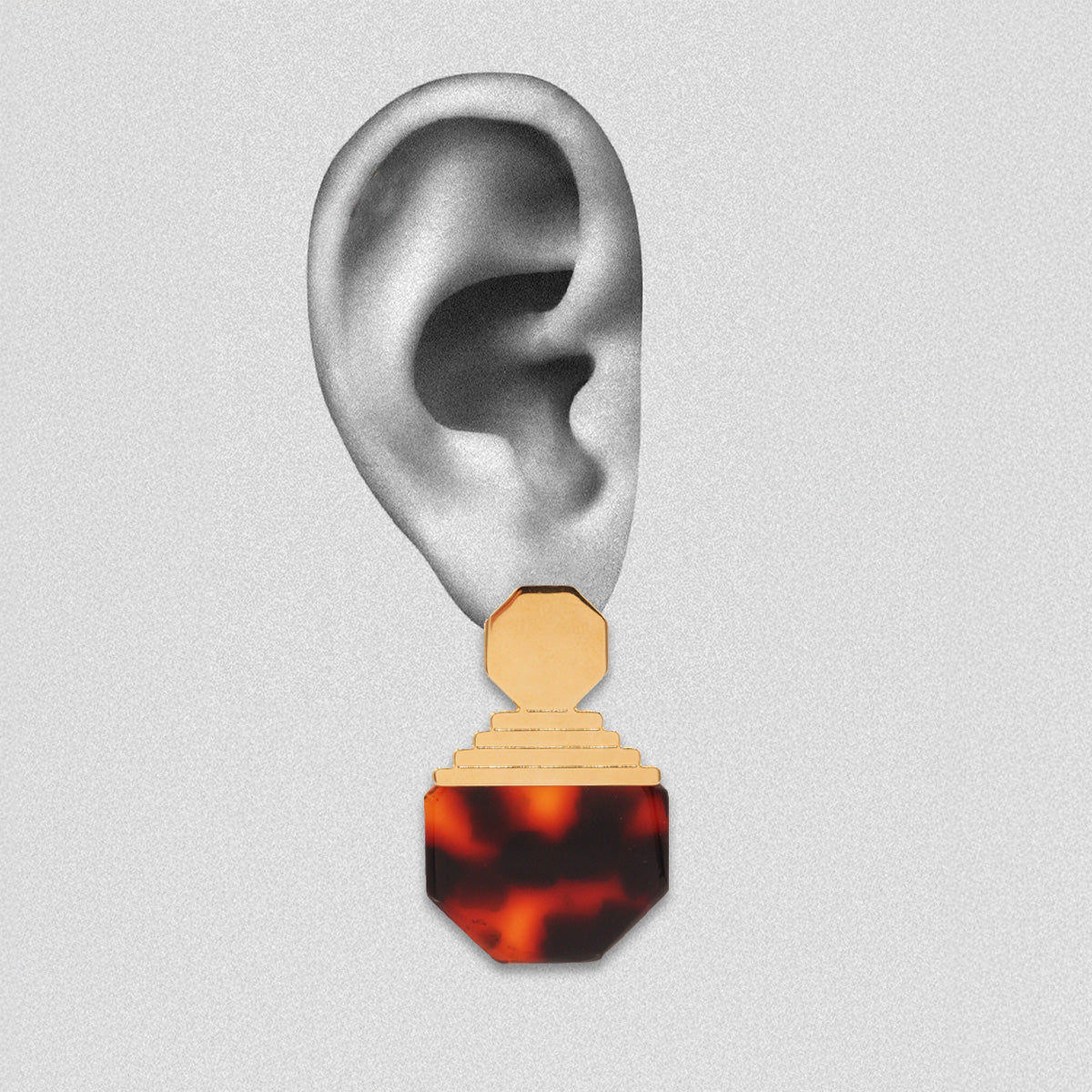 La créatrice découpe et fabrique ensuite elle-même ses propres designs à partir de ces plaques en acétate pour créer des boucles originales et uniques.