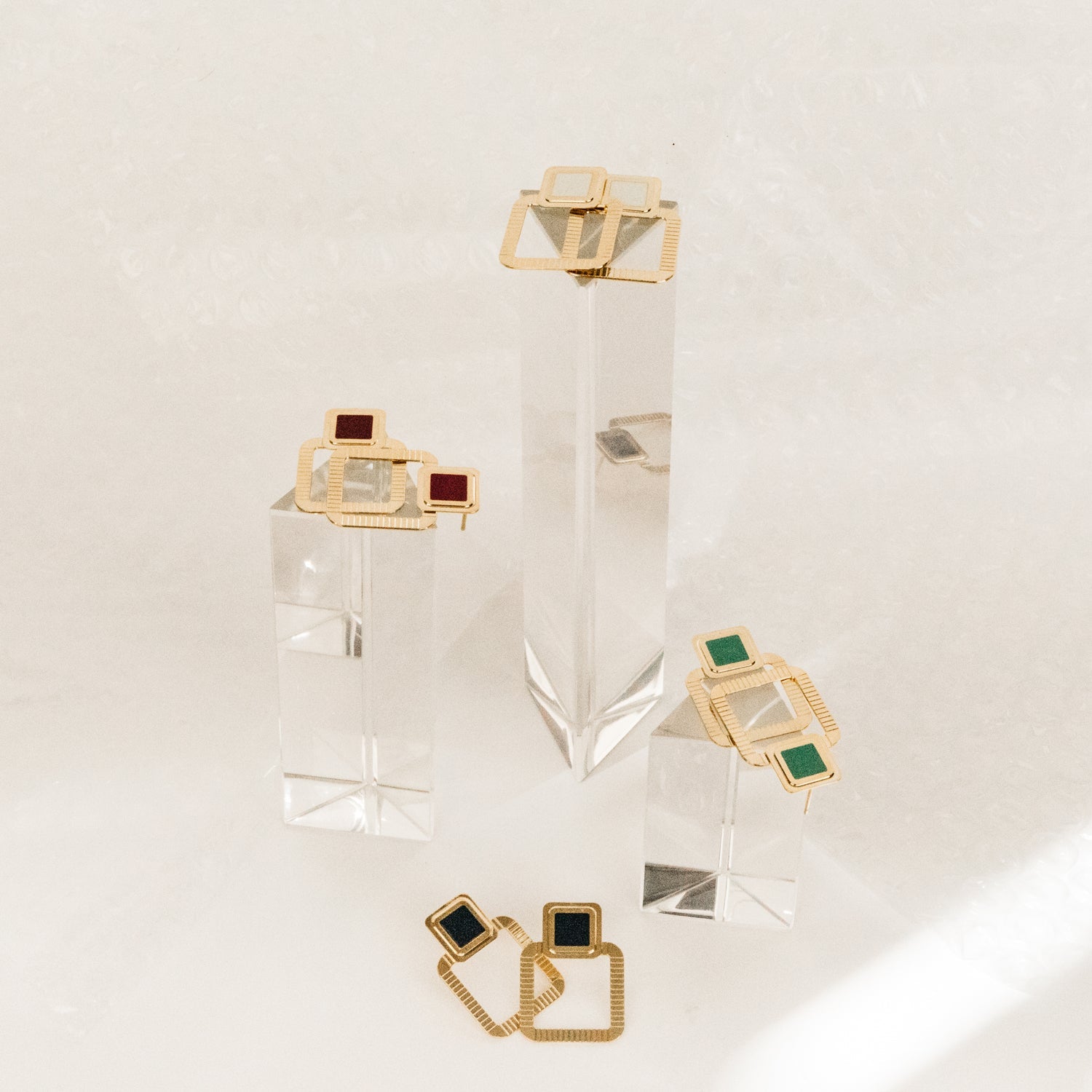 La résine sont les notes de couleurs que vous pouvez voir sur nos bijoux. Il s'agit d'un procédé artisanal. Lorsque vous sélectionnez votre couleur lors de votre commande, la créatrice vient ensuite déposer à la main la résine dans la couleur de votre choix sur chaque pièce.