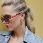 Avec les boucles d'oreilles Tess, on joue sur les lignes et la longueur pour un look géométrique et féminin