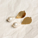 Des magnifiques boucles estampées avec de la véritable dentelle de Calais réhaussée par une belle perle baroque.