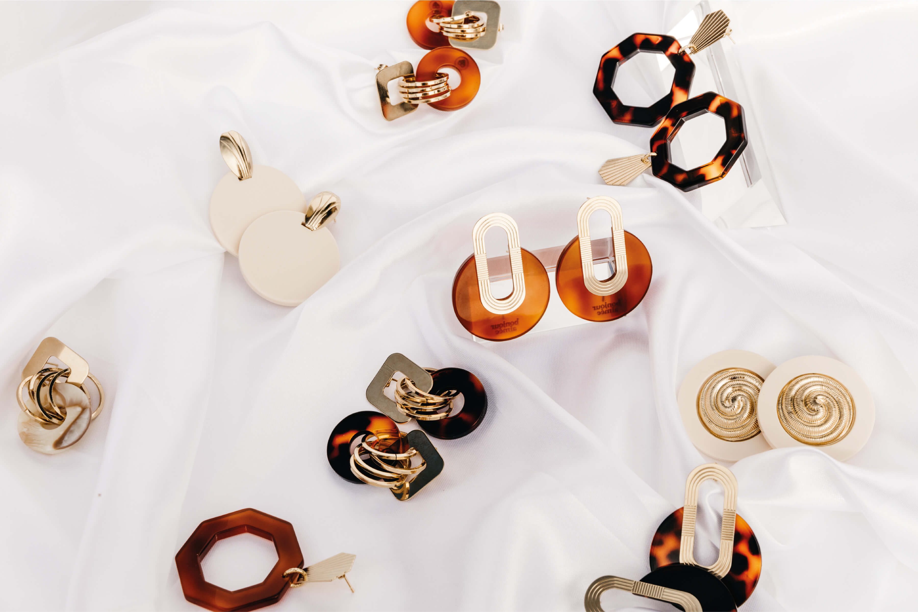 Habituellement utilisé dans la lunetterie, la créatrice a choisi l'acétate de cellulose pour ses créations. Une matière très légère, chic, résistante et aux multiples teintes.