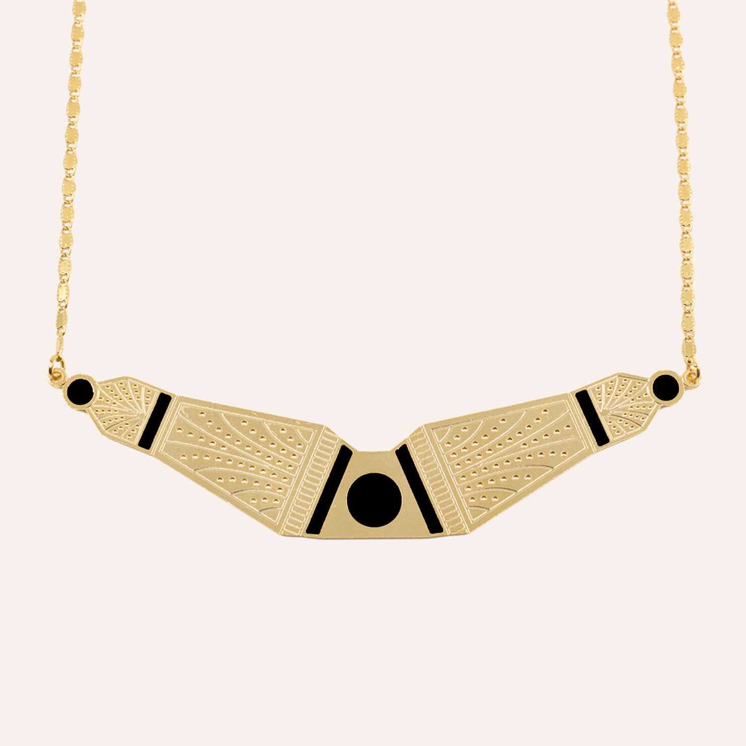 De jolies gravures inspirées des bijoux des années 20 pour le collier Jeanne, parfait pour habiller votre décolleté avec une touche rétro