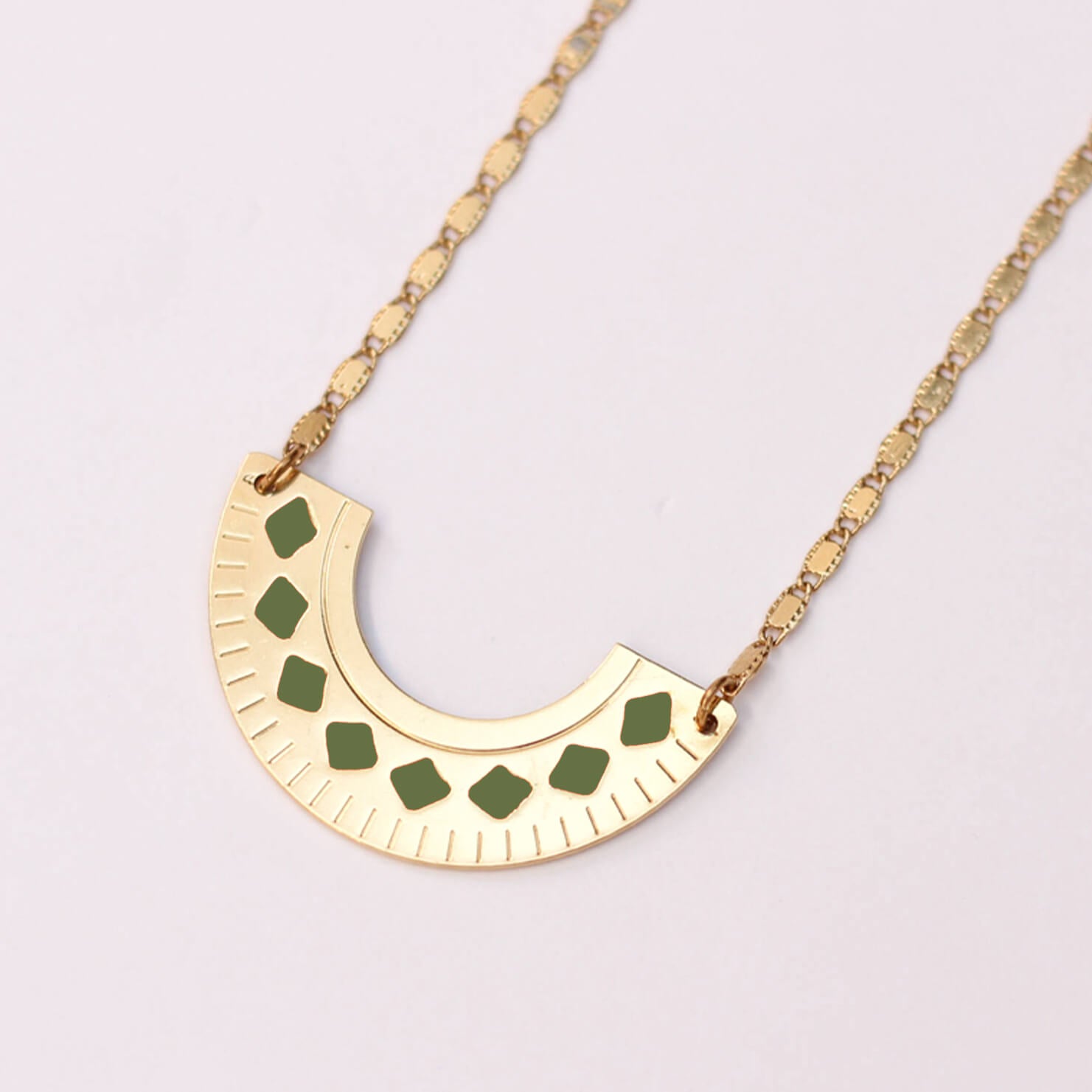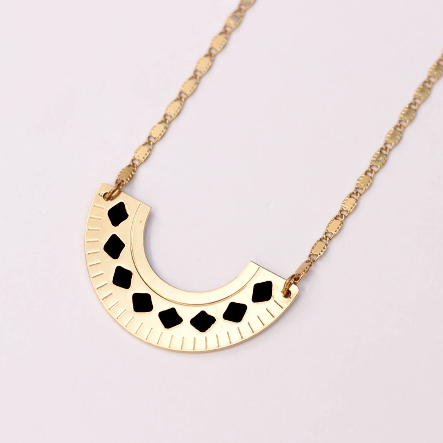 Collier court au pendentif géométrique, avec une chaînette d'extension de 6cm pour ajuster la longueur à votre décolleté.
