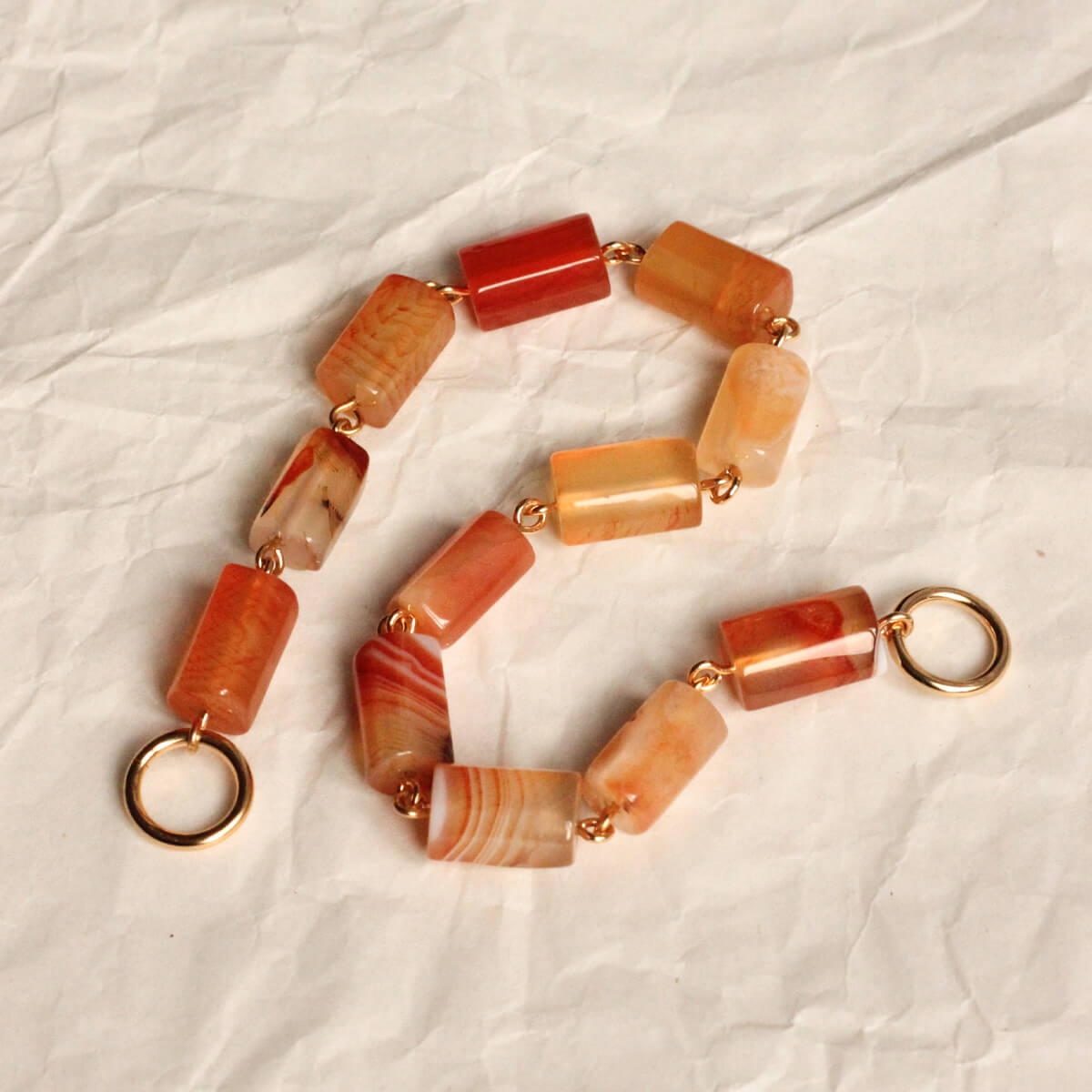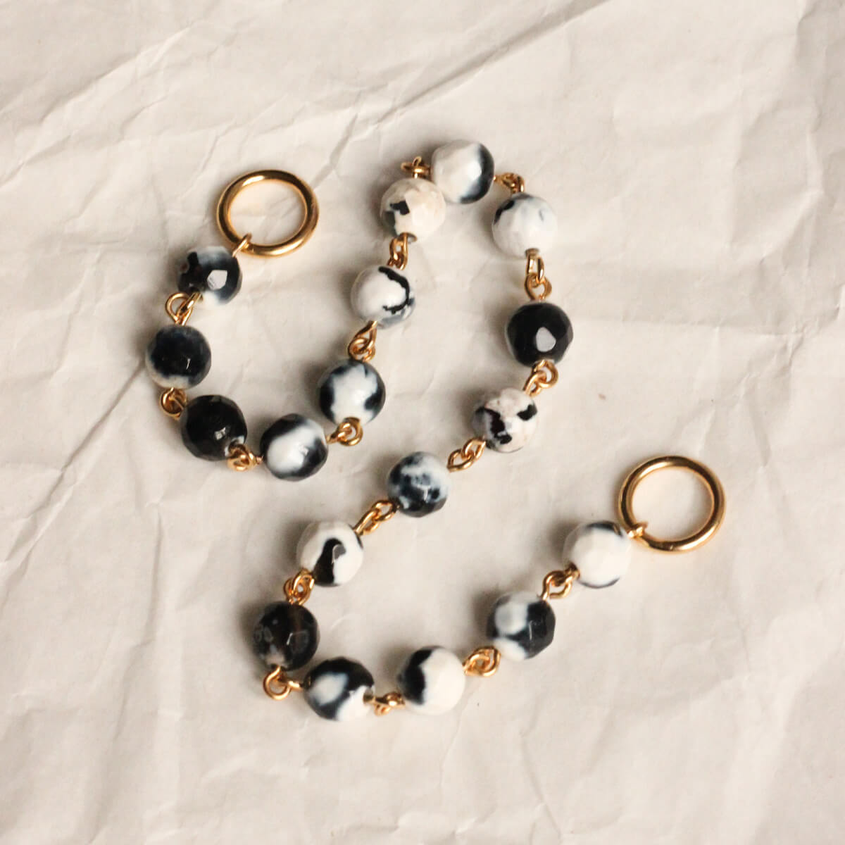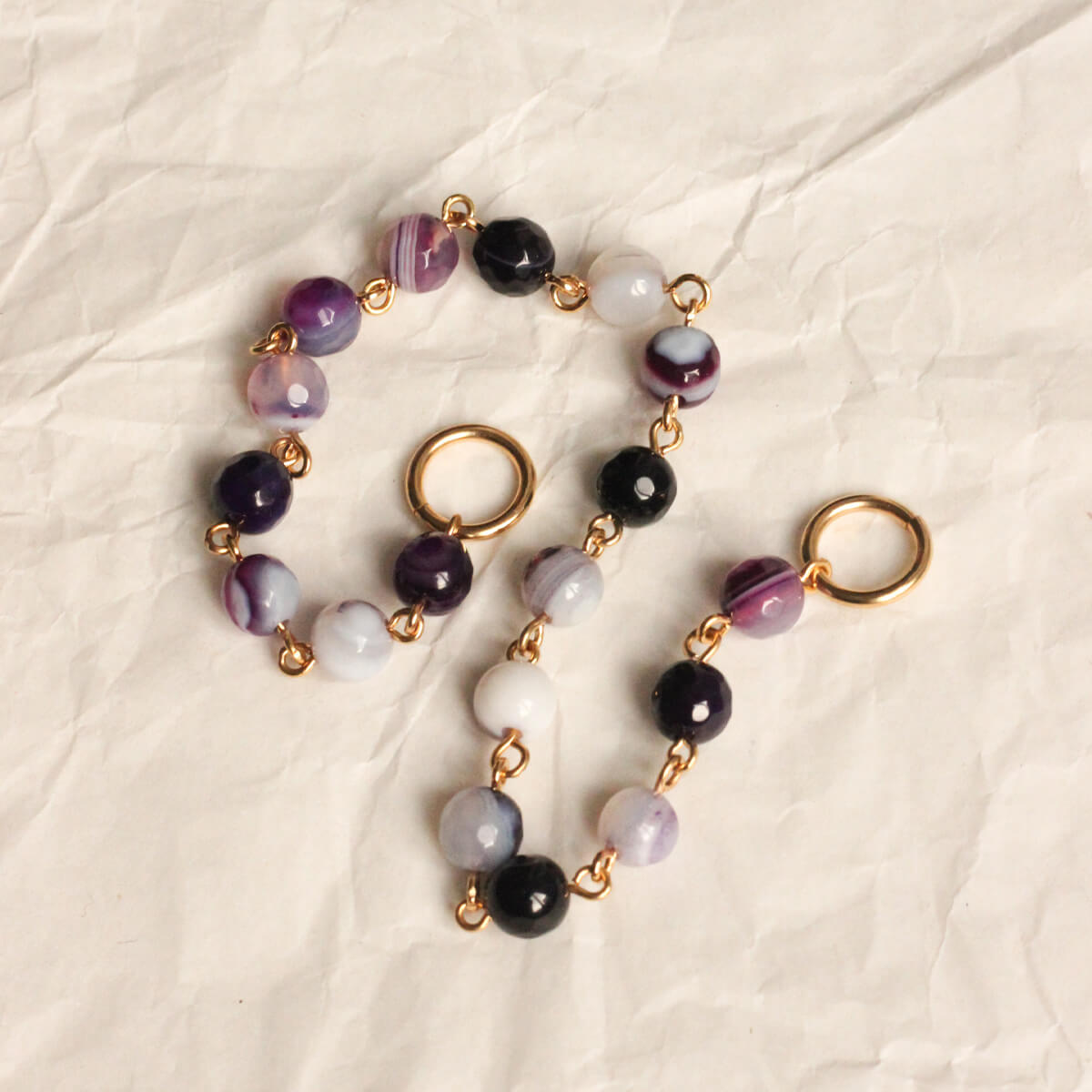 Les rangs de perles sont tous fabriqués à partir de différentes perles en pierre fines naturelles. Chaque rang est donc unique.