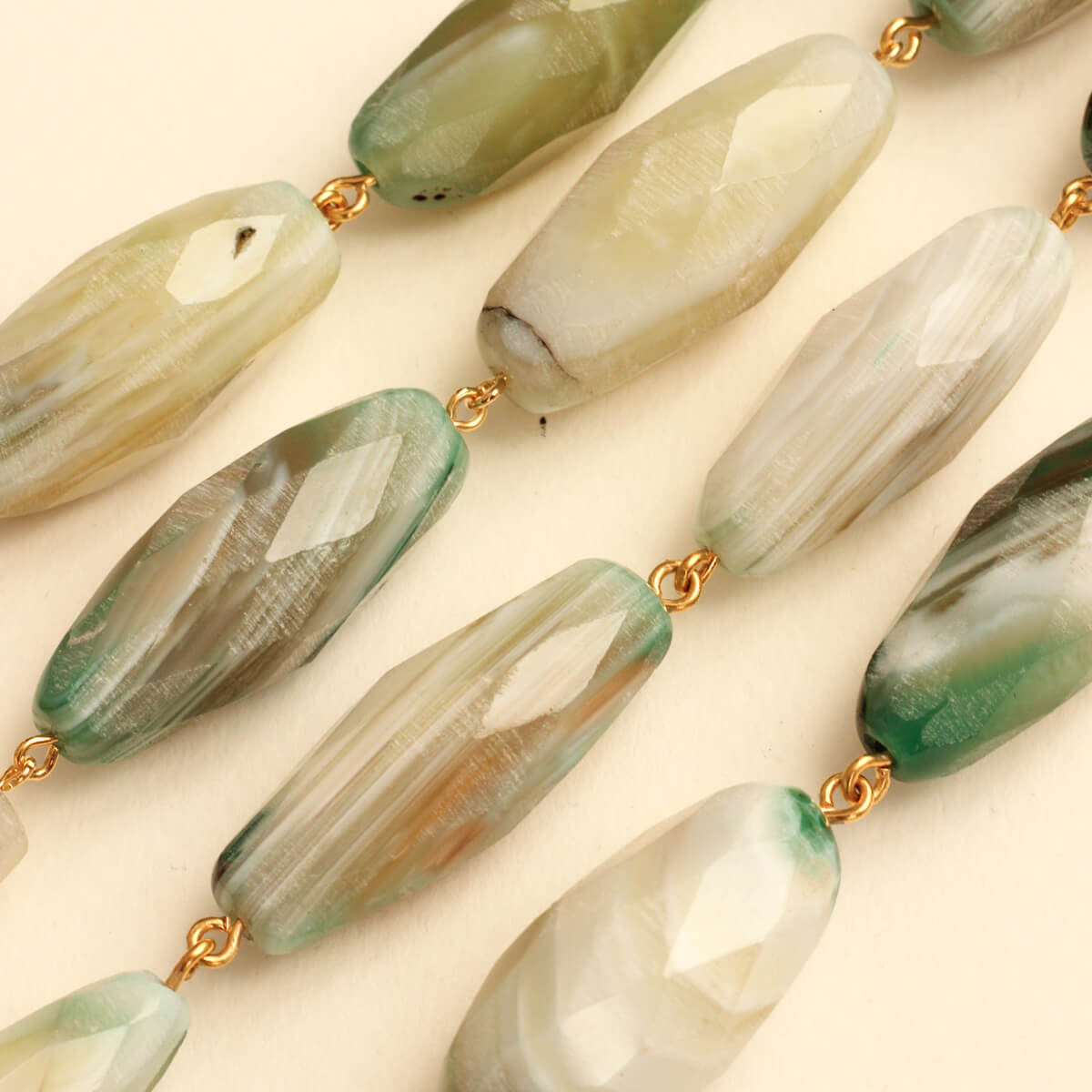 Les rangs de perles sont tous fabriqués à partir de différentes perles en pierre fines naturelles. Chaque rang est donc unique.
