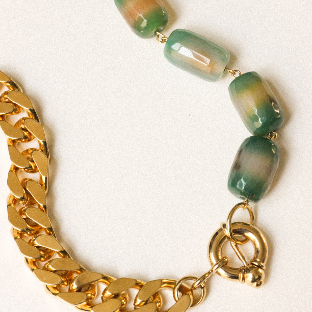 Perles N°11 - Agate tonneau facetté Vert et Marron